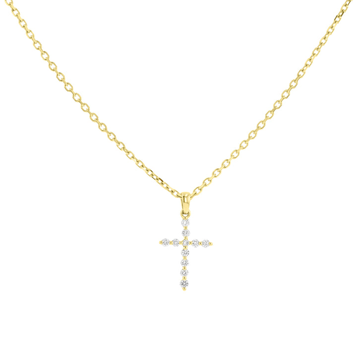 A meaningful design with vintage charm. This 18K gold cross pendant features diamonds arranged in an elegant silhouette with subtle marquise-inspired accents at the tips. The warm hue of gold enhances the timeless beauty of the cross, making it a standout piece for daily wear, gifting, or spiritual milestones.